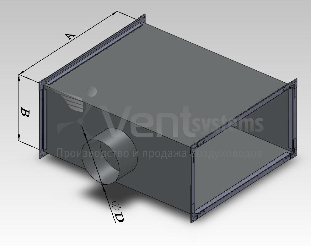 Прямоугольный стальной оцинкованный тройник с фланцами и прямоугольной врезкой