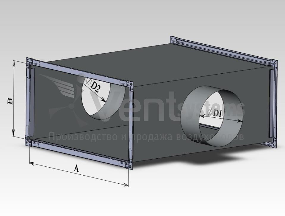 Прямоугольный стальной оцинкованный переход с фланцами (длина перехода подбирается автоматически, исходя из рекомендованных параметров)