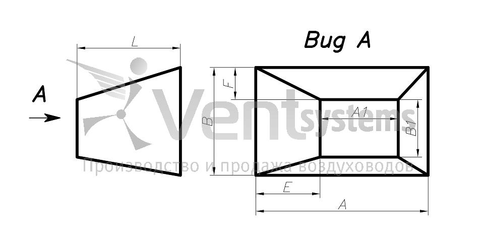 Фасонные изделия  Переход прямоугольное сечение на прямоугольное сечение (с нестандартным смещением, тип 6)